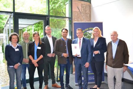 Bildunterschrift: Der Sportkreisvorsitzende Dr. Eckardt Stein (1.v.re.) freute sich mit den Verantwortlichen von Kreis, KVHS und Land Hessen.